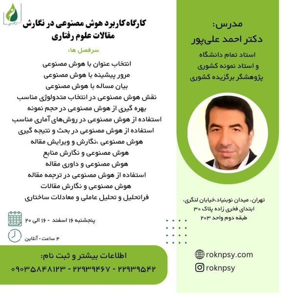 كارگاه کاربرد هوش مصنوعی در نگارش مقالات علوم رفتارى